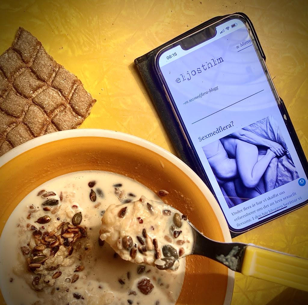Här i sexmedflera-världen har ingen längre barn eller jobb, inga sjuka föräldrar, överfulla källarförråd eller sönderfrysta vattenledningar i fritidshuset. Vi är, för några timmar, befriade o frikopplade. Klart vi är medvetna om varifrån vi kommer o hur vår Verklighet ser ut. Men vi njuter av kontrasten. Vi har varit så kloka o städade hela fredagen, gått på möten, skrattat artigt åt arbetskompisens ointressanta story, handlat på Coop o köpt rätt sorts chips till barnen (som är så upprymda över att få vara helt själv en hel kväll, ja tillomed DOM är förväntansfulla! ”Pappa, ska ni inte gå snart?!”)