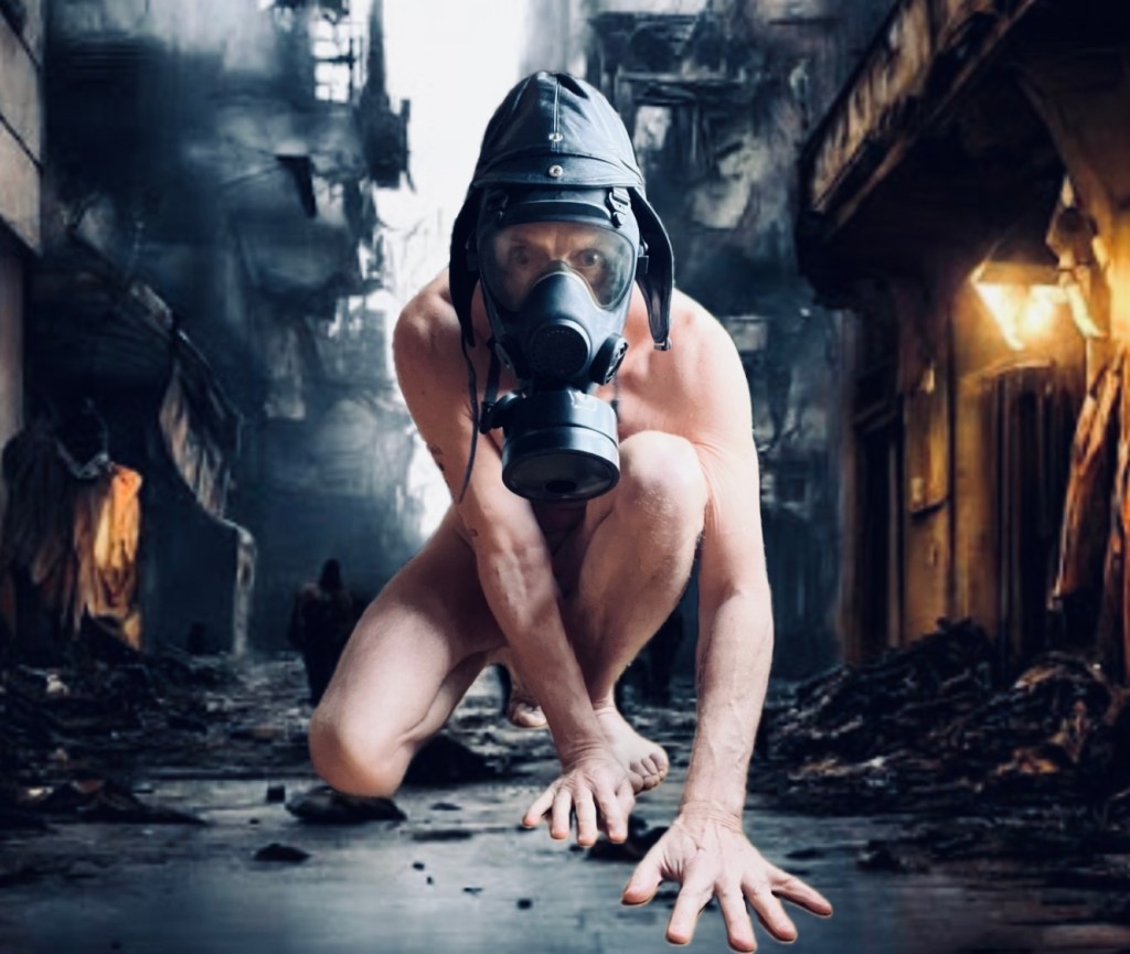 För när den okände mannen tar hennes hand så följer hon med. Dom passerar förbi mig. Hennes kind är bara decimeter från mitt gasmasktäckta ansikte. Dom kryssar genom lokalen, förbi alla människor- jag kryssar efter. Dom hittar sitt dunkla hörn, som jag tänkte att dom skulle. Där fortsätter kyssarna. Jag hoppas fan han kysser bra, annars kommer lusten få svårt att vakna i henne, det vet jag. Men det verkar funka. Han är lång så hon får sträcka på sig. Hans händer söker sig in under hennes korta skinnkjol, hon åmar sig lite, ser till så att han kan komma åt. Jag är bara några meter ifrån dom, andas lugnt (som man måste i gasmask). Hennes hand kupar hans kön utanpå skinnbyxorna, ståndet måste helt enkelt vara på väg att bli kraftfullt, allt annat är omöjligt. Hon lyckas dra ner dragkedjan, knäppa upp byxknappen- bra gjort där, är inte alltid så lätt med en hand. Jag anar hur han känner nu, vet hur det känns att veta att man snart får kuken befriad.